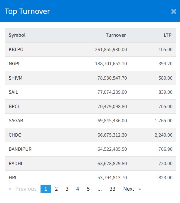 त्यस्तै, ङादी ग्रुप पावरको १८ करोड ८७ लाख रुपैयाँ, शिवम् सिमेन्टको सात करोड ८९ लाख रुपैयाँ, श्रीनगर एग्रोटेकको सात करोड ७० लाख रुपैयाँ र बुटवल पावर कम्पनीको सात करोड चार लाख रुपैयाँको शेयर कारोबार भएको छ ।
