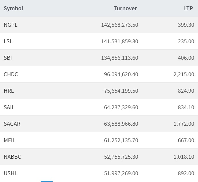 त्यसपछि लक्ष्मी सनराइज बैंकको १४ करोड १५ लाख रुपैयाँको, नेपाल एसबिआई बैंकको १३ करोड ४८ लाख रुपैयाँको, सीईडीबी होल्डिङ्सको ९ करोड ६० लाख रुपैयाँको, हिमालयन रिको ७ करोड ५६ लाख रुपैयाँ र श्रीनगर एग्रीटेकको ६ करोड ४२ लाख रुपैयाँको शेयर किनबेच भएको छ।