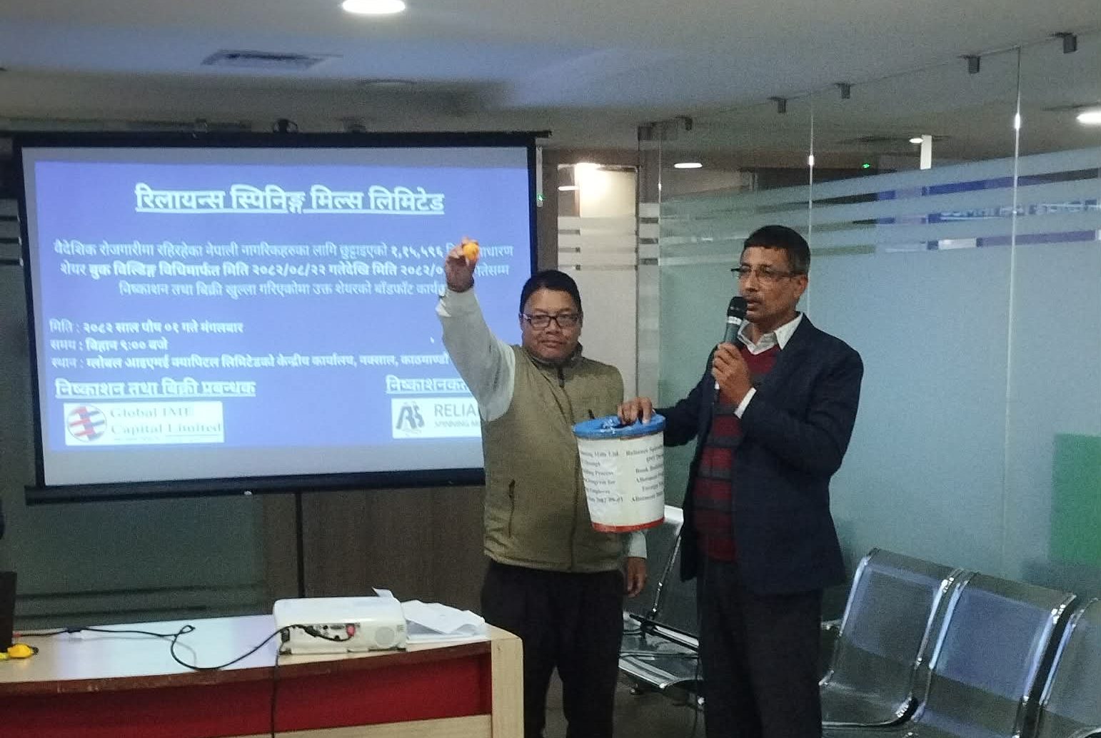 काठमाडौं । रिलायन्स स्पिनिङ्ग मिल्स लिमिटेडले मंसिर २२ देखि २५ गतेसम्म वैदेशिक रोजगारीमा रहेका नेपालीहरूका लागि निष्कासन गरेको आईपीओ आज बाँडफाँड गरेको छ।