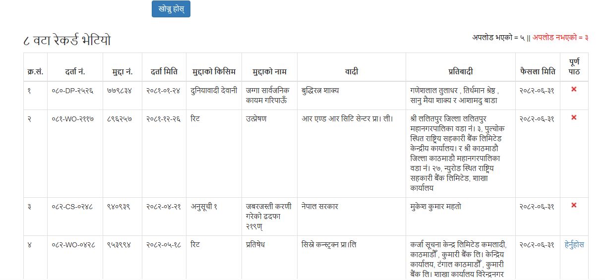 यो प्रकरणमा अब उच्च अदालतका न्यायाधीश समेतको मिलेमतो झल्किएको छ । उच्च अदालत पाटनले असोज ३१ गते ‘गणतन्त्र कोरियामा सिपयुक्त श्रमिक पठाउनेसम्बन्धी कार्यविधि, २०८०’ स्थगित गर्ने सरकारको निर्णय तत्काल कार्यान्वयन नगर्न भनी गरेको भनिएको आदेश समेत लुकाइएको छ । त्यो मितिमा भएका आदेशमध्ये अदालतको वेवसाइटमा आठ वटाको मात्रै रेकर्ड भेटिएको छ । त्यसमा पनि पाँचवटाको मात्रै आदेशप्रति अपलोड भएको छ भने तीनवटाको अपलोड भएको छैन । असोज ३१ को पेशी सूची समेत रेकर्डमा छैन ।