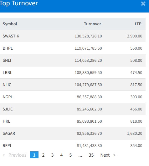 साथै, बराही हाइड्रोपावर, सन नेपाल लाइफ, लुम्बिनी विकास बैंक र नेपाल लाइफको शेयर सर्वाधिक खरिदबिक्री भएको हो ।