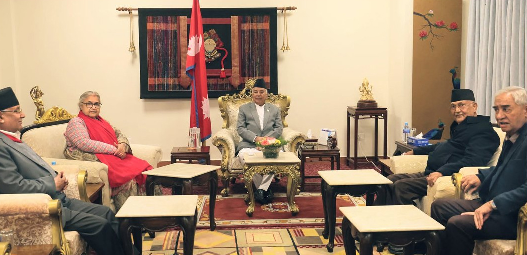 काठमाडौं । नेपाली कांग्रेसका युवा नेताहरु गगन थापा र विश्व प्रकाश शर्माले राष्ट्रपति रामचन्द्र पौडेलसँग भेटेर आगामी फागुन २१ गतेको निर्वाचन सार्नुपर्ने माग गरेको समाचार बाहिर आएकै दिन शितल निवासले निर्वाचनलाई केन्द्रमा राखेर तीन दलका शीर्ष नेताहरु केपी शर्मा ओली, शेर बहादुर देउवा, प्रचण्डसहित प्रधानमन्त्री सुशिला कार्कीलाई राखेर छलफल गरेका छन् ।