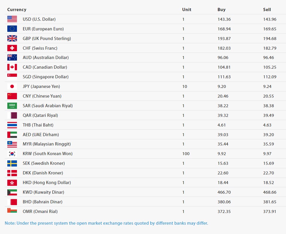 त्यसैगरी एक यूएई दिरामको खरीदमूल्य ३९.०३ रुपैयाँ र बिक्रीमूल्य ३९.२० रुपैयाँ, १०० दक्षिण कोरियन वोनको खरीदमूल्य ९.२९ रुपैयाँ र बिक्रीमूल्य ९.९७ रुपैयाँ र एक कुवेती दिनारको खरीदमूल्य ४६६.७० रुपैयाँ र बिक्रीमूल्य ४६८.६६ रुपैयाँ कायम भएको छ।