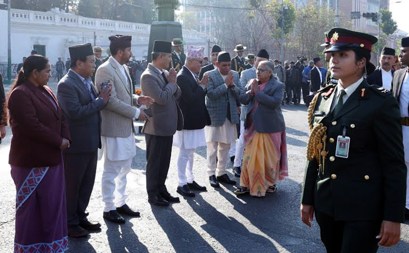 यता, रामशाहपथमै बसेर लामो समय न्याय निसाप छिनेकी प्रधानमन्त्री कार्कीले ओलीको शंका विपरीत रामशाहपथमा फरक दृष्य देखिन् । यो पल्ट रामशाहपथस्थित पृथ्वीनारायण शाहकको शालिकमा राष्ट्र प्रमुखबाट माल्यार्पण मात्रै भएन । नेपाली सेनाले भव्य कार्यक्रम गरेको छ । कार्यक्रममा राष्ट्रपति रामचन्द्र पौडेल, उपराष्ट्रपति रामसहायप्रसाद यादव, प्रधानमन्त्री सुशीला कार्की, प्रधानन्यायाधीश प्रकाशमानसिंह राउत, राष्ट्रियसभाका अध्यक्ष नारायणप्रसाद दाहाल र उपाध्यक्ष विमला घिमिरे, नेपाल सरकारका मन्त्रीहरु, मुख्यसचिव तथा नेपाल सरकारका उच्चपदस्थ अधिकारीहरु सहभागी भए ।