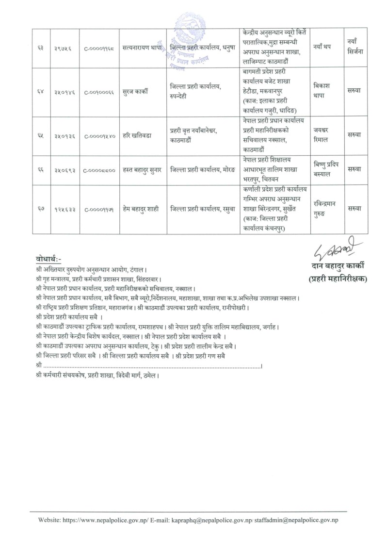 नेपाल प्रहरीका ६७ डिएसपीको सरुवा, को कहाँ पुगे ?