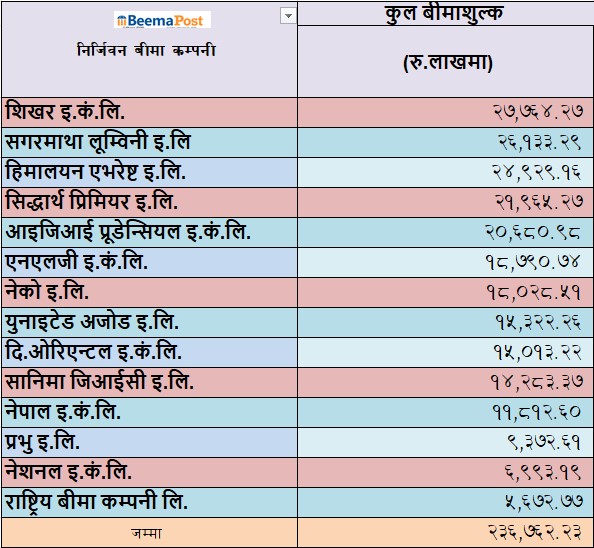 दोस्रो त्रैमासमा निर्जिवन बीमकको साढे २३ अर्बमाथिको व्यवसाय: शिखर अग्रस्थानमा, नेशनल र आरबीसिएल कमजोर बन्दै