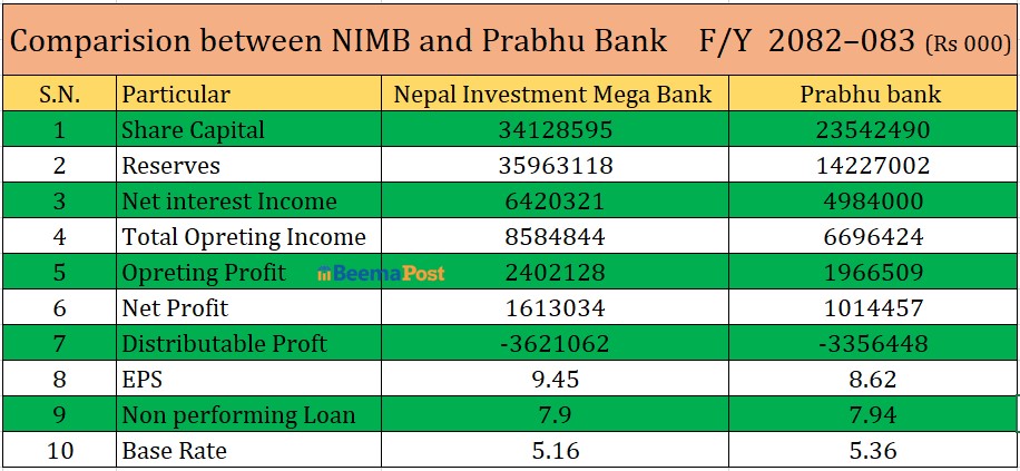 नेपाल इन्भेष्टमेन्ट मेगा र प्रभु बैंकबीच तुलनात्मक अध्ययन, को कति बलियो ? (तथ्याङ्कसहित)