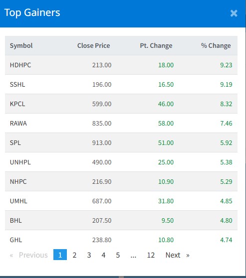 यसदिन हिमाल दोलाखा हाइड्रोपावरको शेयर९.२३ प्रतिशत, शिवश्री हाइड्रोपावरको ९.१९ प्रतिशत, कालिका पावरको ८.३२ प्रतिशतले शेयर मूल्य बढेको छ ।