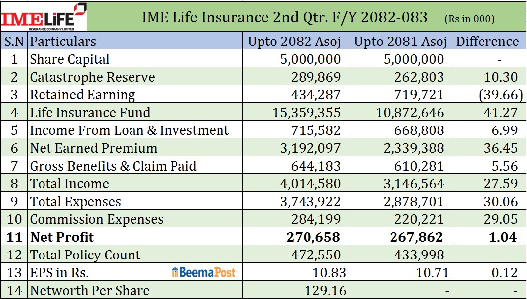 आइएमई लाइफको नाफासँगै बढ्यो प्रतिशेयर आम्दानी, अन्य वित्तीय सूचक कस्तो?