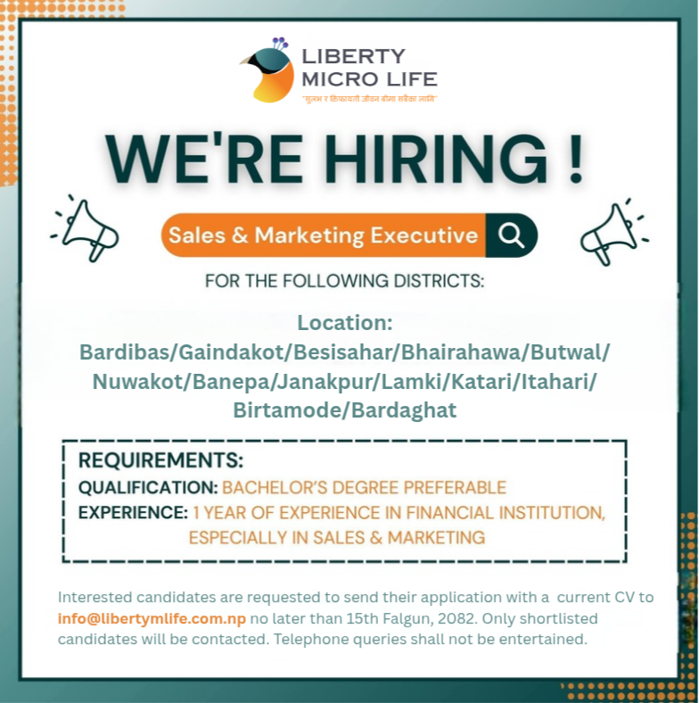 लिबर्टी माइक्रो लाइफमा रोजगारीको अवसर, कसरी दिने आवेदन ?