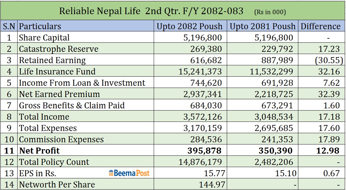 रिलायबल नेपाल लाइफको नाफा १३ प्रतिशत बढ्यो, अधिकांश सूचकमा प्रगति