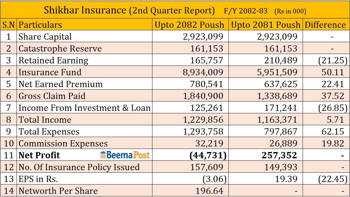 शिखर इन्स्योरेन्सले ६ महीनामा गर्यो ७८ करोडको व्यवसाय, अन्य सूचकको अवस्था कस्तो?