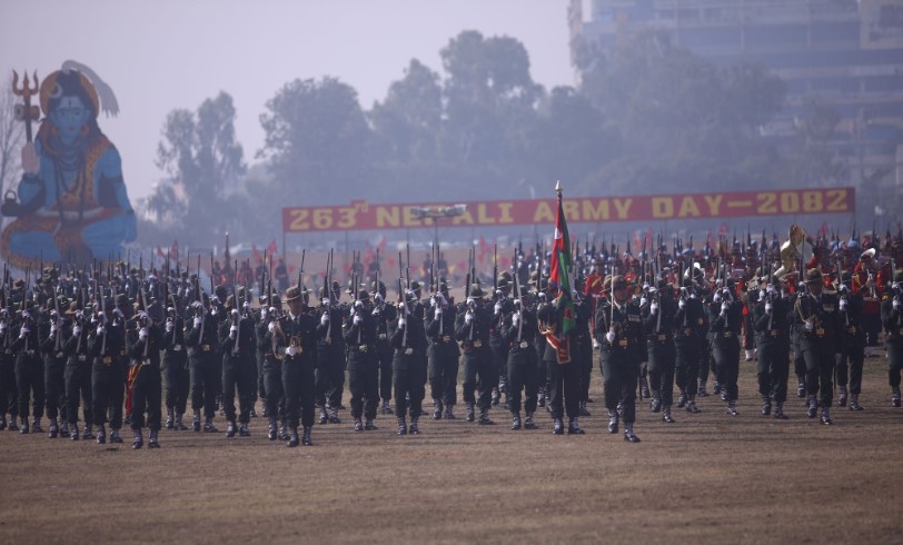 काठमाडौँ । नेपाली सेनाले आफ्नो स्थापनाको २६३औँ वार्षिकोत्सवका अवसरमा महाशिवरात्रिका दिन काठमाडौँको सैनिक मञ्च टुँडिखेलमा विशेष समारोह आयोजना गर्दै सेना दिवस मनाएको छ।
