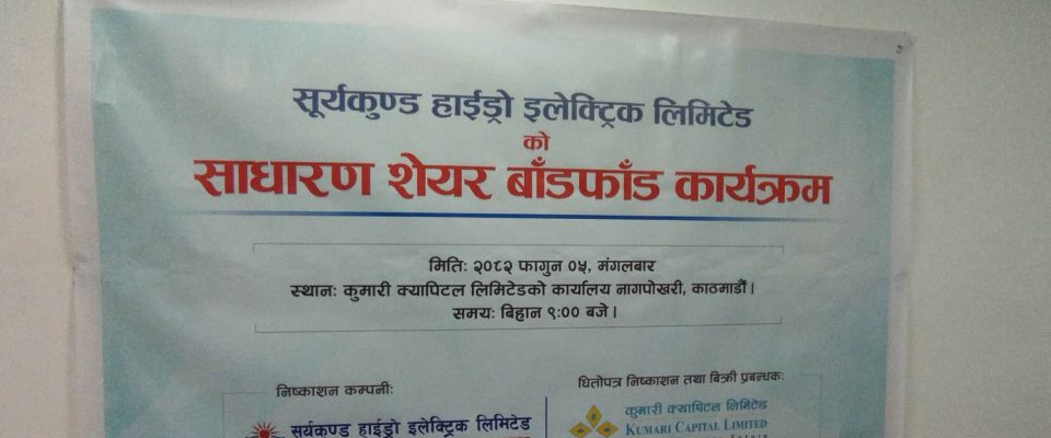 सूर्यकुण्ड हाइड्रोको आईपीओ बाँडफाँड, ५७ हजार २४३ जनाले हात पारे शेयर