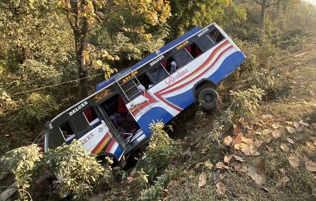 बिजुलीको खम्बामा बस ठोक्किंदा २२ जना घाइते