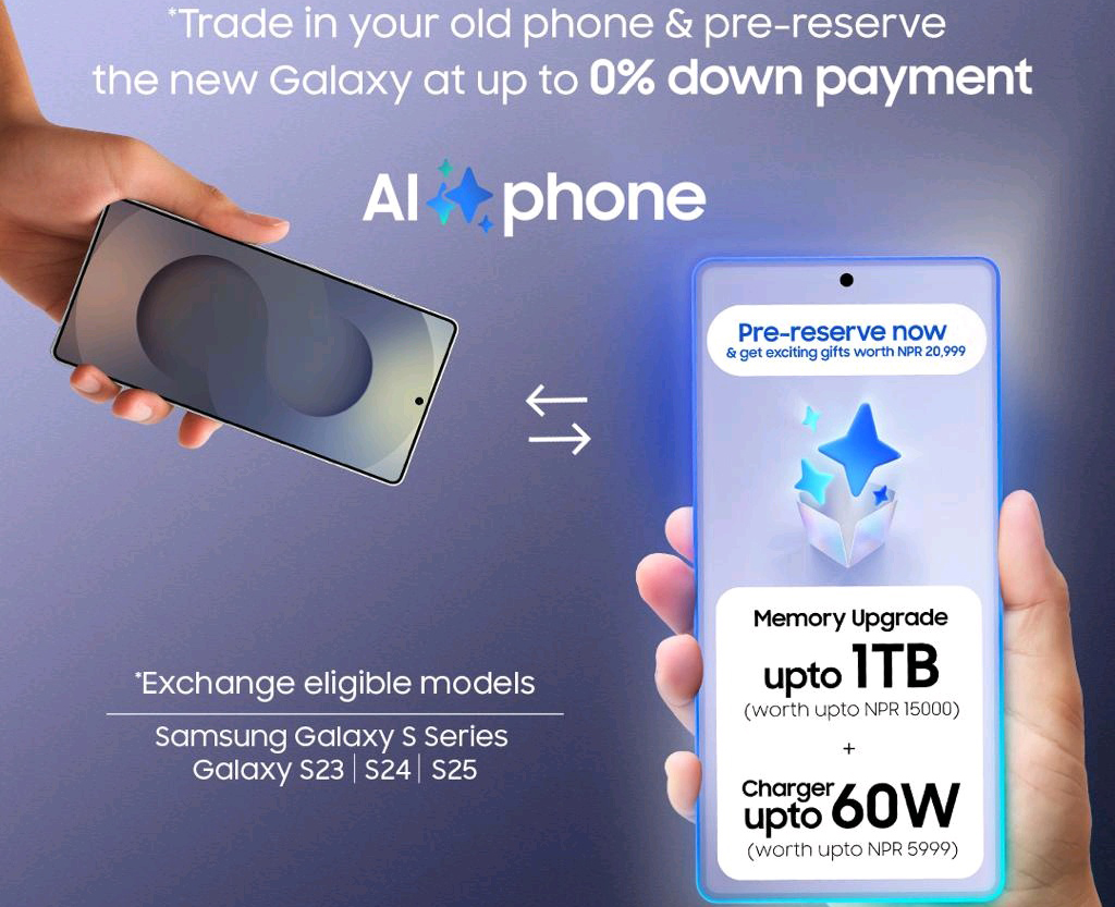 अग्रिम दर्ता योजना २३ फेब्रुअरीदेखि २६ फेब्रुअरी सम्म मात्र लागू हुनेछ। यस अवधिमा ग्राहकहरूले आफ्नो पुरानो फोन साटेर नयाँ कृत्रिम बुद्धिमत्ता (एआई) प्रविधियुक्त स्मार्टफोनका लागि दर्ता गर्न सक्नेछन्।