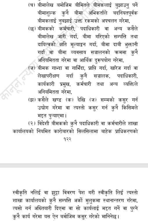 यस सम्बन्धमा हालसम्म बीमा सम्बन्धमा बीमा कम्पनी, बीमित, बीमा कर्मचारी वा सञ्चालकबाट भएका बीमा सम्बन्धी अपराधमा कहाँ चलाउने भन्ने स्पष्ट व्यवस्था थिएन ।