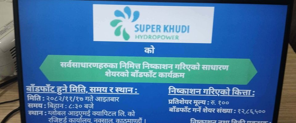 सुपर खुदी हाइड्रोपावरको आईपीओ बाँडफाँड, १ लाख २८ हजारले पाए शेयर