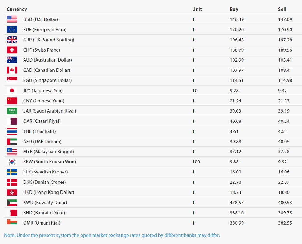 त्यस्तै एक साउदी अरेबियन रियालको खरीददर ३९.०३ रुपैयाँ र बिक्रीदर ३९.१९ रुपैयाँ, एक कतारी रियालको खरीददर ४०.०८ रुपैयाँ र बिक्रीदर ४०.२४ रुपैयाँ, एक यूएई दिरामको खरीददर ३९.८८ रुपैयाँ र बिक्रीदर ४०.०५ रुपैयाँ कायम भएको छ।