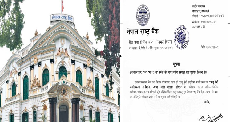 काठमाडौं । व्यवसायीहरूको मागलाई सम्बोधन गर्दै केन्द्रिय बैंकले चालू पुँजी कर्जाको नीतिलाई खुकुलो बनाएको छ । राष्ट्र बैंकले चालू पुँजी कर्जा सम्बन्धी मार्गदर्शन, २०७९ संशोधन गर्दै चालू पुँजी कर्जाको नीति खुकुलो बनाएको हो ।