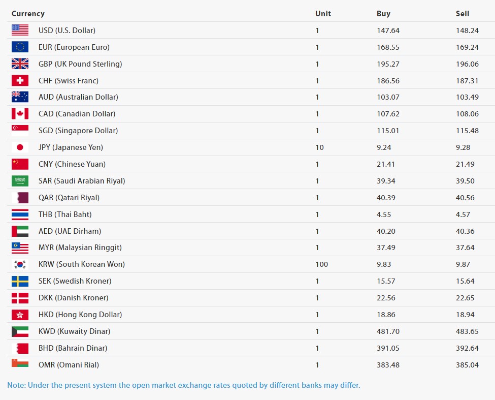 त्यसैगरी एक साउदी अरेबियन रियालको खरीदमूल्य ३९.३४ रुपैयाँ र बिक्रीभाउ ३९.५० रुपैयाँ, एक मलेसियन रिंगिटको खरीदमूल्य ३७.४९ रुपैयाँ र बिक्रीमूल्य ३७.६४ रुपैयाँ र १०० दक्षिण कोरियन वोनको खरीदमूल्य ९.८३ रुपैयाँ र बिक्रीमूल्य ९.८७ रुपैयाँ निर्धारण भएको छ।
