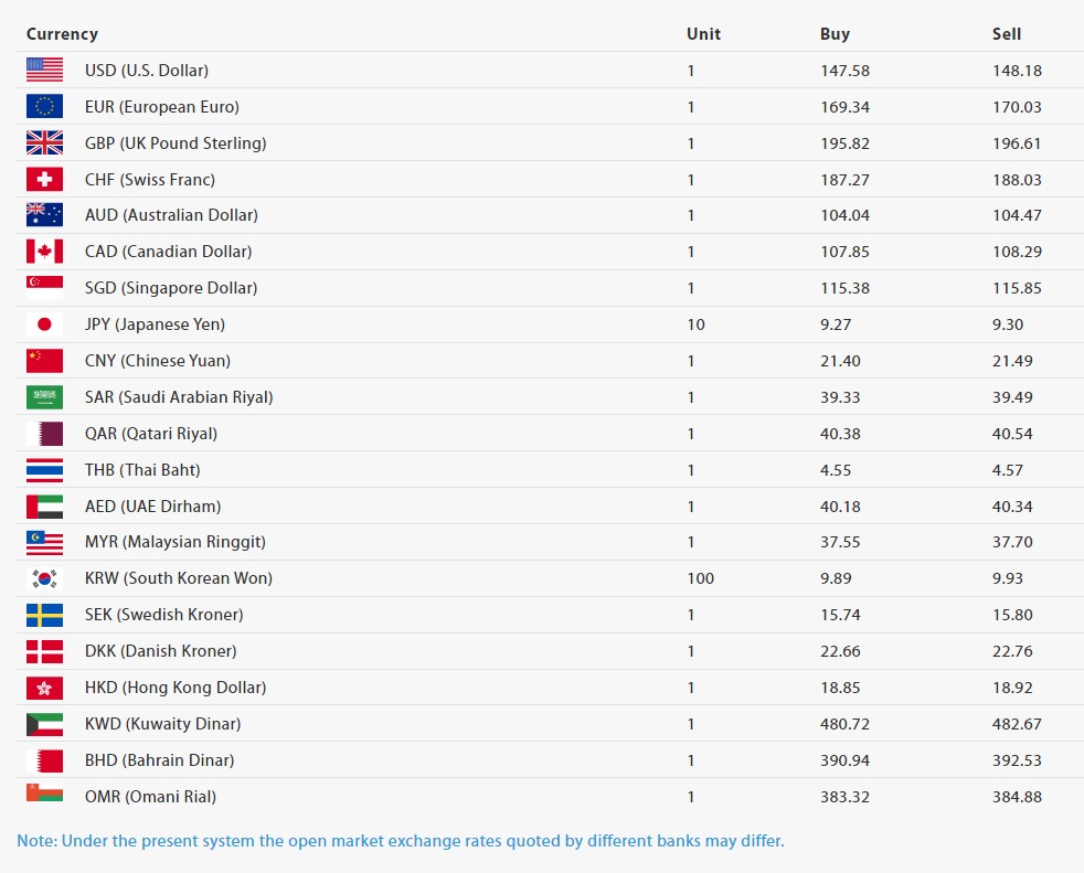 त्यसैगरी एक मलेसियन रिंगिटको खरीदमूल्य ३७.५५ रुपैयाँ र बिक्रीमूल्य ३७.७० रुपैयाँ, १०० दक्षिण कोरियन वोनको खरीदमूल्य ९.८९ रुपैयाँ र बिक्रीमूल्य ९.९३ रुपैयाँ र एक कुवेती दिनारको खरीदमूल्य ४८०.७२ रुपैयाँ र बिक्रीमूल्य ४८२.६७ रुपैयाँ निर्धारण भएको छ।