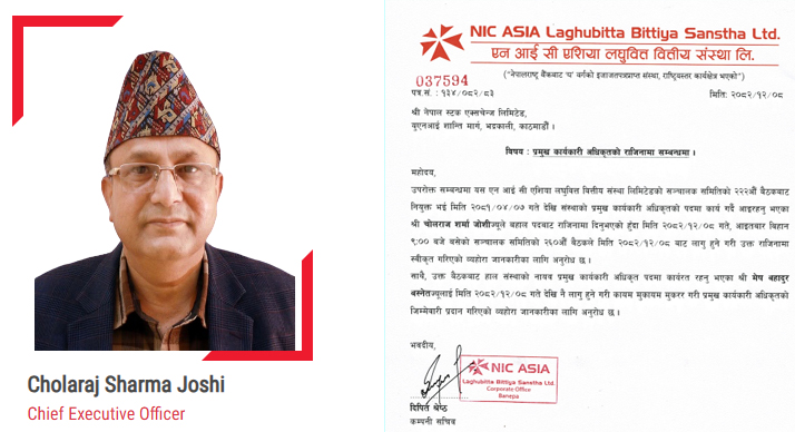 एनआइसी एशिया लघुवित्तका सीईओ चोलराज शर्मा जोशीले दिए राजिनामा