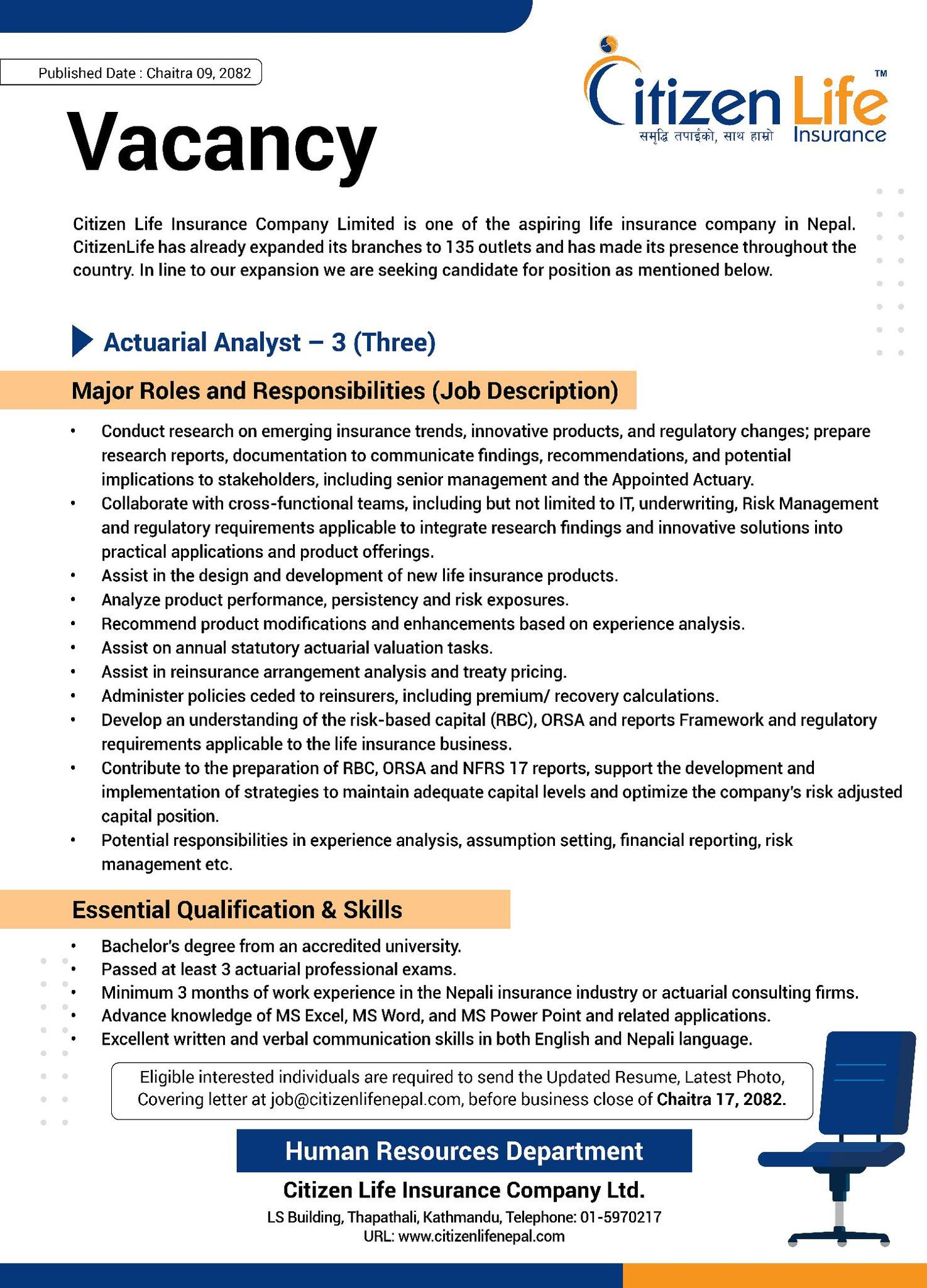 सिटिजन लाइफ इन्स्योरेन्सद्वारा एक्चुरीयल एनालिष्ट माग, कति चाहिन्छ शैक्षिक योग्यता ?