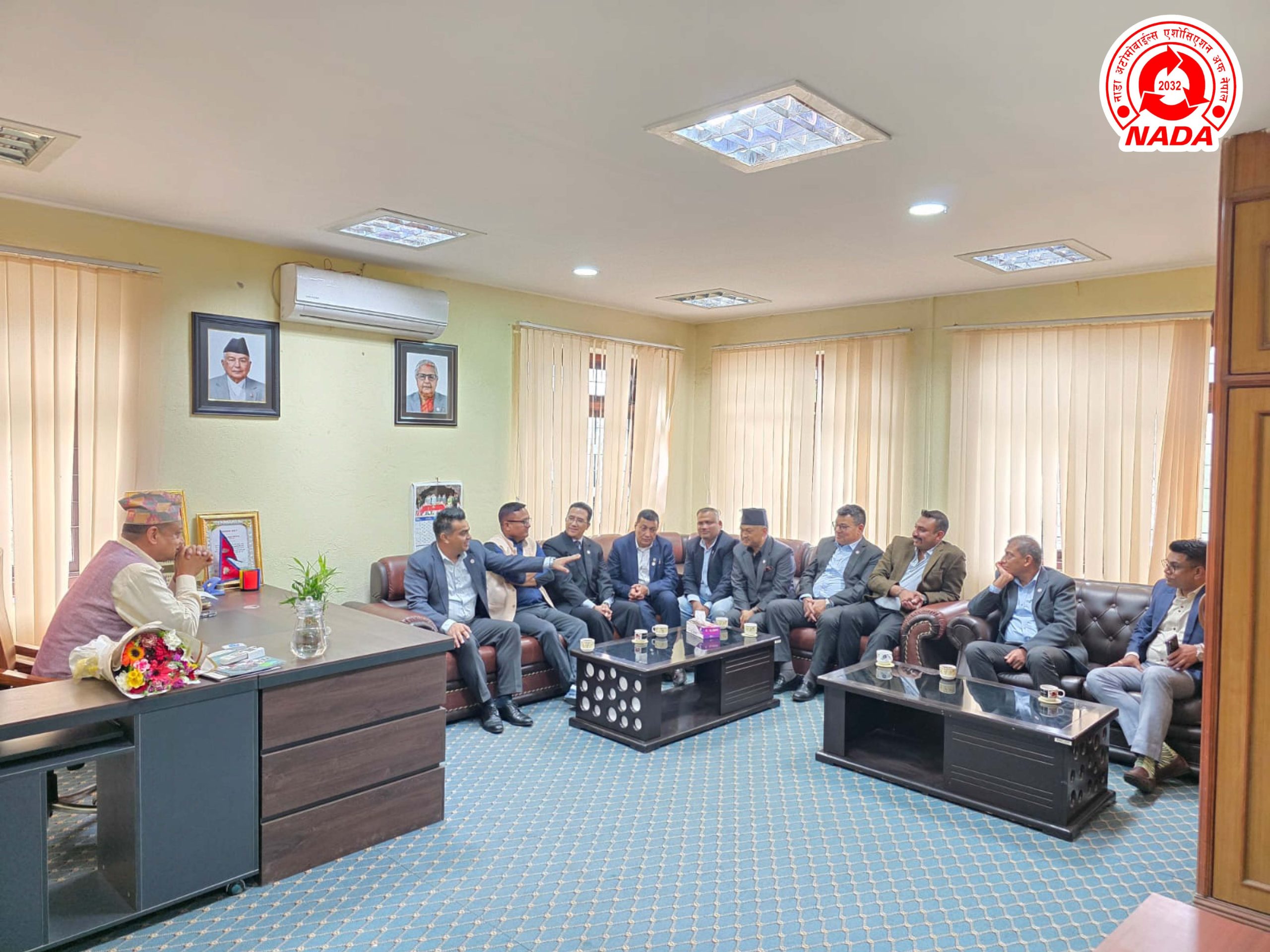 काठमाडौँ । नाडाका अध्यक्ष सुरेन्द्रकुमार उप्रेतीको नेतृत्वमा गएको नाडा प्रतिनिधि मण्डलले बागमती प्रदेशका माननिय मुख्यमन्त्री इन्द्रवहादुर बानियासंग भेटगरी अटोमोवाइल क्षेत्रका विभिन्न विषयहरुमा विस्तृत रुपमा छलफल गरेको छ ।