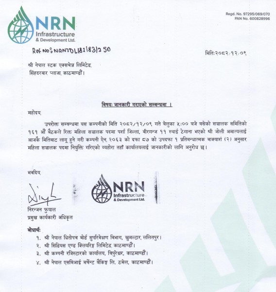एनआरएन इन्फ्रास्ट्रक्चरको संचालक नियुक्त