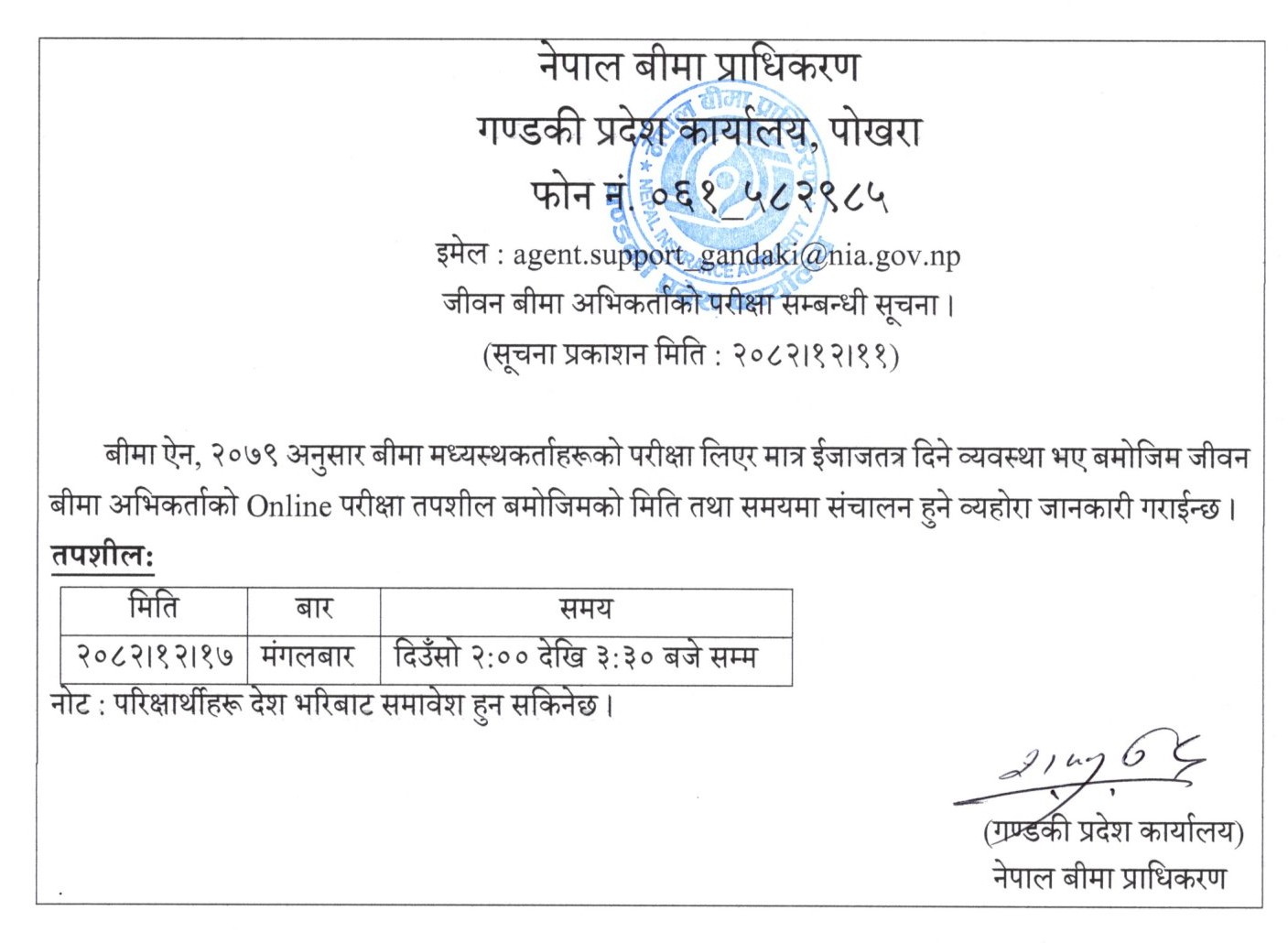 नेपाल बीमा प्राधिकरण मधेश प्रदेशले मंगलबार अभिकर्ता परीक्षा सञ्चालन गर्ने