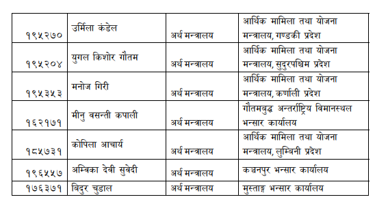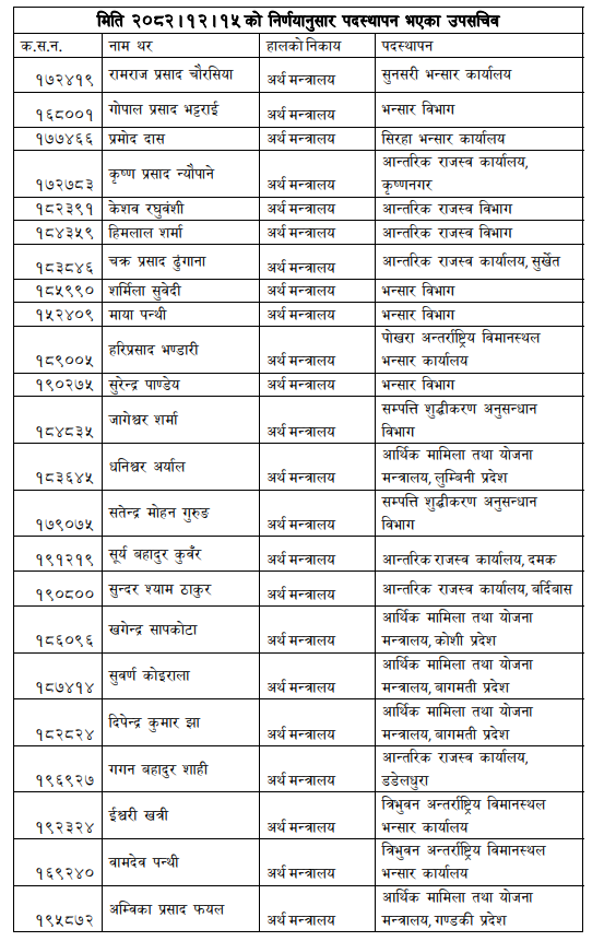 सरूवामा अर्थ मन्त्रालयमा कार्यरत उपसचिवहरूलाई विभिन्न सरकारी तथा अर्धसरकारी निकायमा पठाइएको मन्त्रालयले जनाएको छ ।