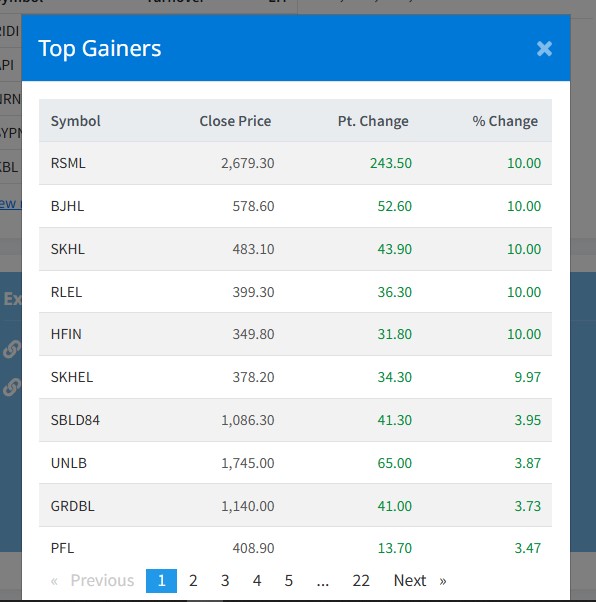 काठमाडौँ । शेयर बजारमा आज दोहोरो अकंले बढेको छ । नेपाल स्टक एक्सचेञ्ज (नेप्से) १९.७० अकंले बढेर २८५१.०९ बिन्दुमा कायम भएको हो ।
