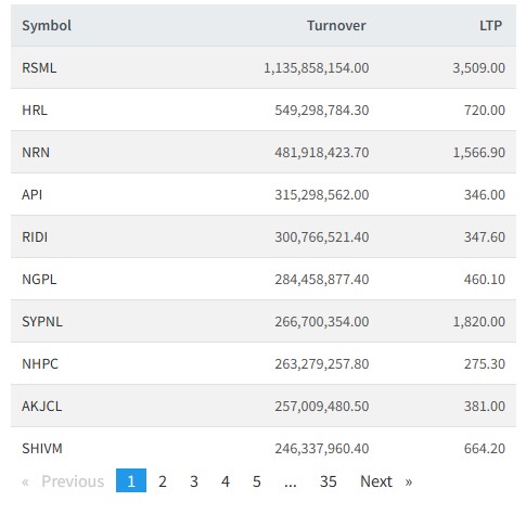 त्यस्तै, हिमालयन रि, एनआरएन इन्फ्रास्टक्चर, अपी पावर, रिदि,नाग्दी गुप्र, एसवाई प्यानल, नेशनल हाईड्रोपावर, आँखु खोला र शिवम सिमेन्टसको सर्वाधिक कारोबार भएको छ।