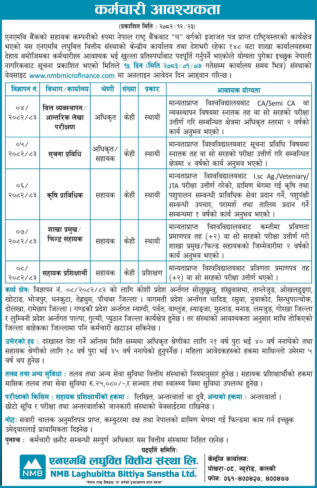 एनएमबी लघुवित्तमा कर्मचारी माग, कति चाहिन्छ योग्यता?