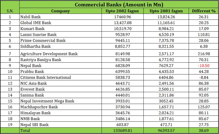 वाणिज्य बैंकको शेयर धितो कर्जा ३८.६९ प्रतिशतले बढ्यो