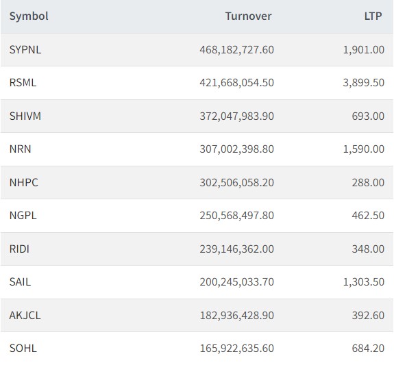 काठमाडौं । बुधबार नेप्से ४५.१२ अंकले वृद्धि भएर २८०२ को विन्दुमा कायम हुँदा ८ अर्ब ३१ करोड ८९ लाख रुपैयाँभन्दा बढीको शेयर किनबेच भएको छ। जसमध्ये एसवाई प्यानलको ४६ करोड ८१ लाख रुपैयाँ र रिलायन्स स्पिनिङ्ग मिल्सको ४२ करोड १६ लाख रुपैयाँको शेयर कारोबार भएको छ।