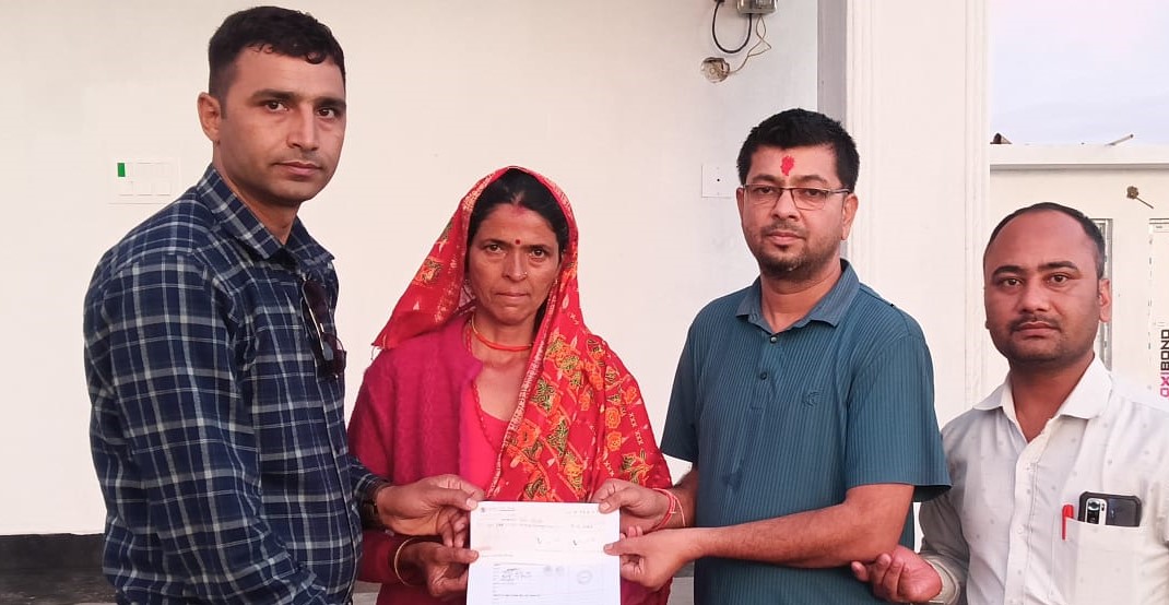 उक्त रकम कम्पनीका सुदूरपश्चिम प्रदेश प्रमुख चन्द्र बहादुर बिष्ट, धनगढी शाखा प्रमुख बिक्रम सिंह बोगटी तथा सिनियर एजेन्सी म्यानेजर थानेश्वर प्रसाद भट्टको उपस्थितिमा मृतकको घरमै पुगेर हस्तान्तरण गरिएको हो ।
