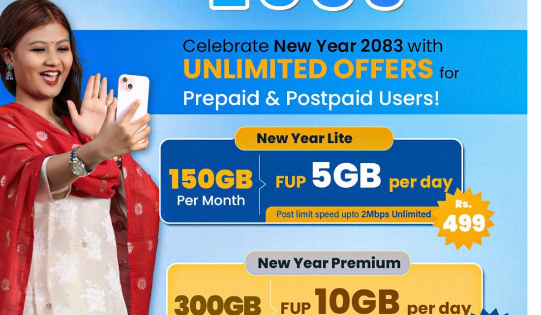 काठमाडौँ । नेपाल टेलिकमले नयाँ वर्ष २०८३ को अवसरमा प्रिपेड तथा पोस्टपेड मोबाइल ग्राहकका लागि विशेष अफर सार्वजनिक गरेको छ ।