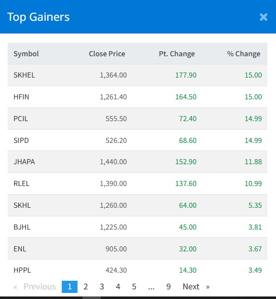 आज यी ४ कम्पनीको शेयर मूल्य १५ प्रतिशतले बढ्यो, अन्यको कुनको कति ?