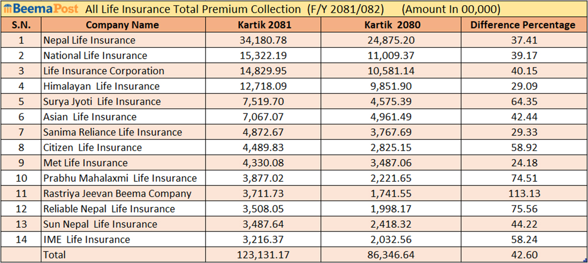 जीवन बीमकहरूको एकल बीमाशुल्क आर्जन ह्वात्तै बढ्यो, कुन कम्पनीको कति?