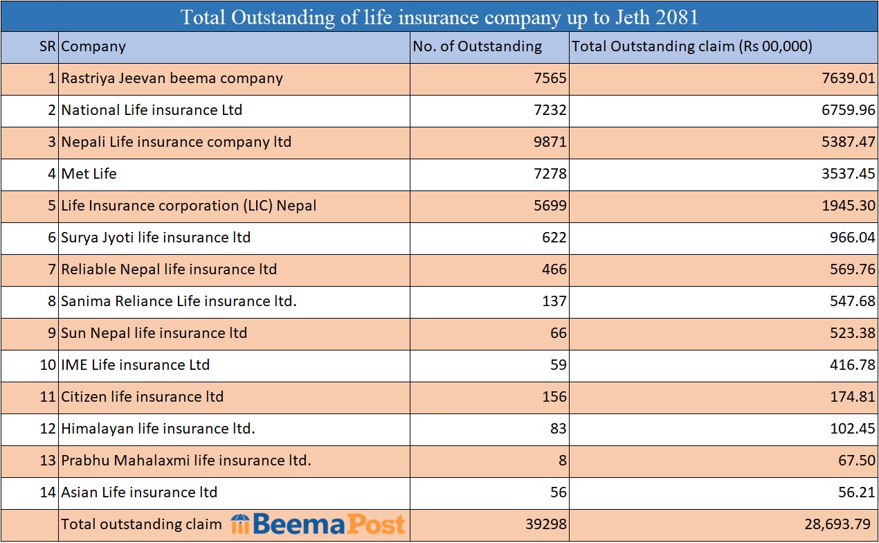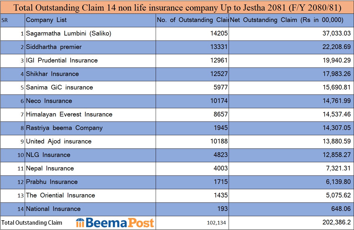 १४ निर्जीवन बीमा कम्पनीको दावी बक्यौता २० अर्ब माथि, सलिकोको बक्यौता सबैभन्दा धेरै (कसको कति सूचिसहित)