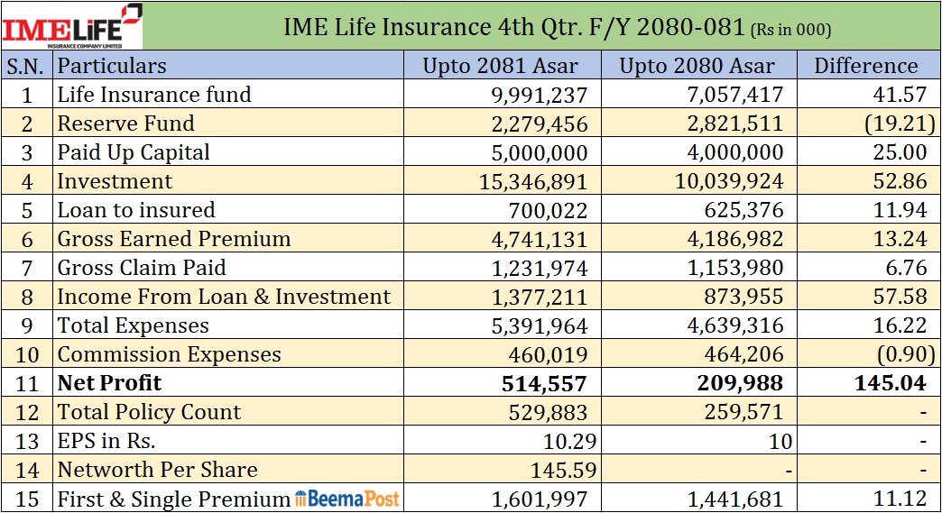 आइएमई लाइफको नाफामा उच्च वृद्धि, बीमा कोषको आकार १० अर्ब