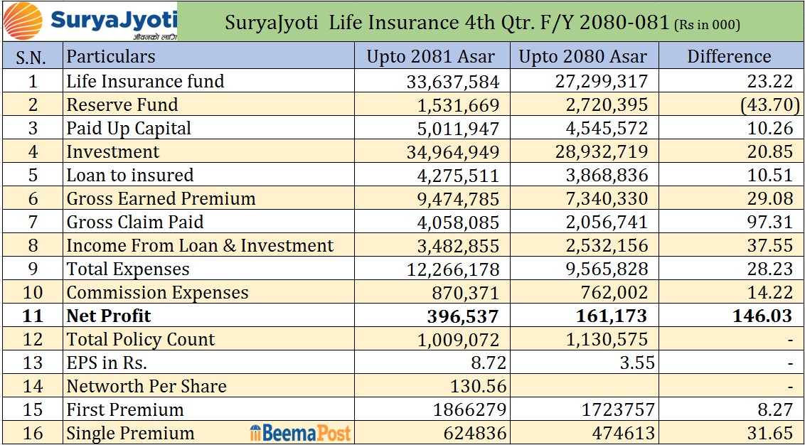 सूर्यज्योति लाइफको वित्तीय विवरणमा उल्लेख्य प्रगति, नाफासँगै ईपीएस वृद्धि