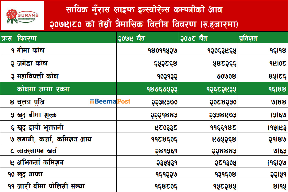 साविक गुराँस लाइफ इन्स्योरेन्सको खुद बीमा शुल्क आर्जन २ अर्बमाथि, खुद नाफा २२ प्रतिशतले बढ्यो