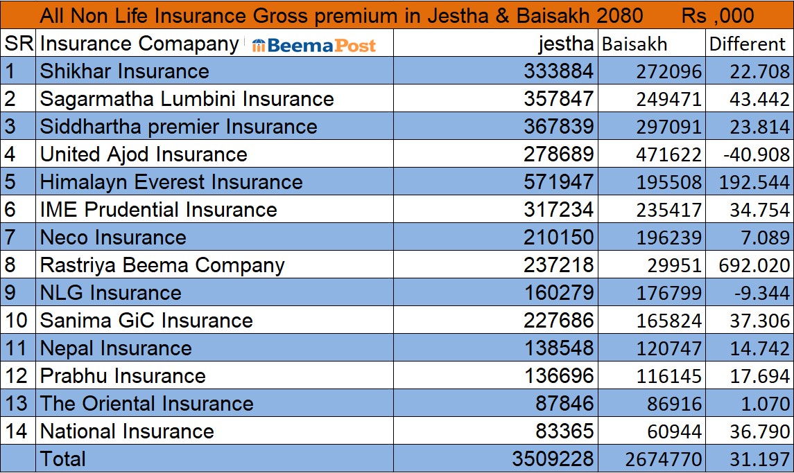 निर्जीवन बीमा कम्पनीहरुको कुल आम्दानी बढ्यो, प्रभु र सानिमा जिआइसीको उल्लेखनीय बृद्धि, अन्यको अवस्था कस्तो ? (तथ्यांकसहित)