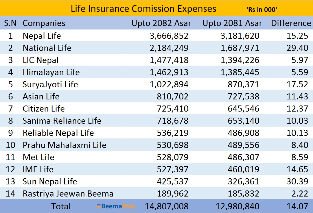 जीवन बीमकले अभिकर्ता कमिशनमा खर्चिए १४ अर्ब ८० करोड, कुनले कति?