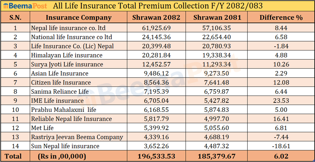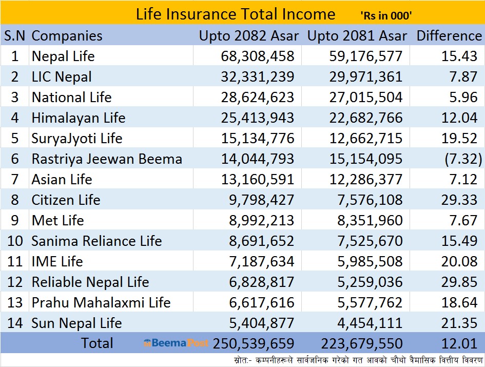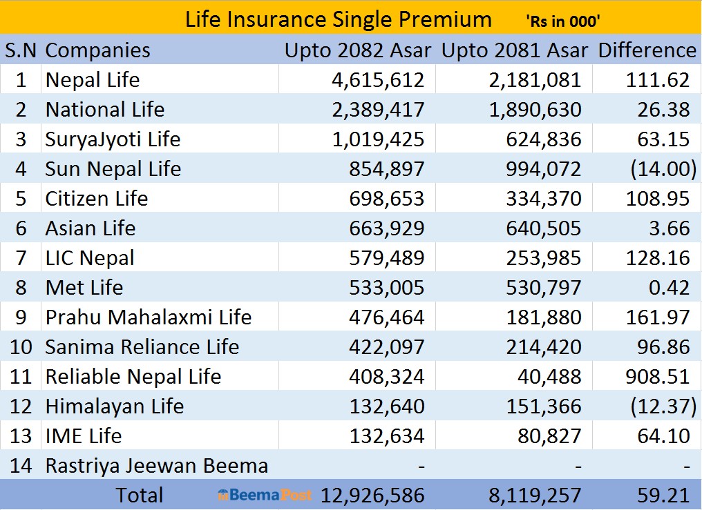 जीवन बीमकहरूको एकल बीमाशुल्क आर्जन ह्वात्तै बढ्यो, कुन कम्पनीको कति?