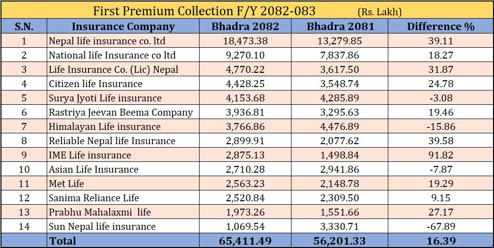 जीवन बीमकद्वारा साढे ६ अर्बको प्रथम बीमा शुल्क आर्जन, अग्रस्थानमा नेपाल र नेशनल लाइफ