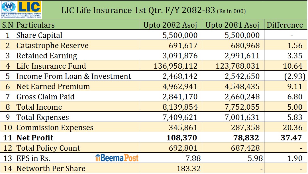 एलआईसी नेपालको खुद नाफा ३७ प्रतिशतले बढ्यो, जीवन बीमाकोष १ खर्ब ३६ अर्बमाथि